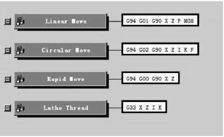 (6)定義數(shù)控程序加工過程程序段。程序加工過程中常用到的直線插補 G01,圓弧插補G02\G03等,不再贅述,如圖6所示。